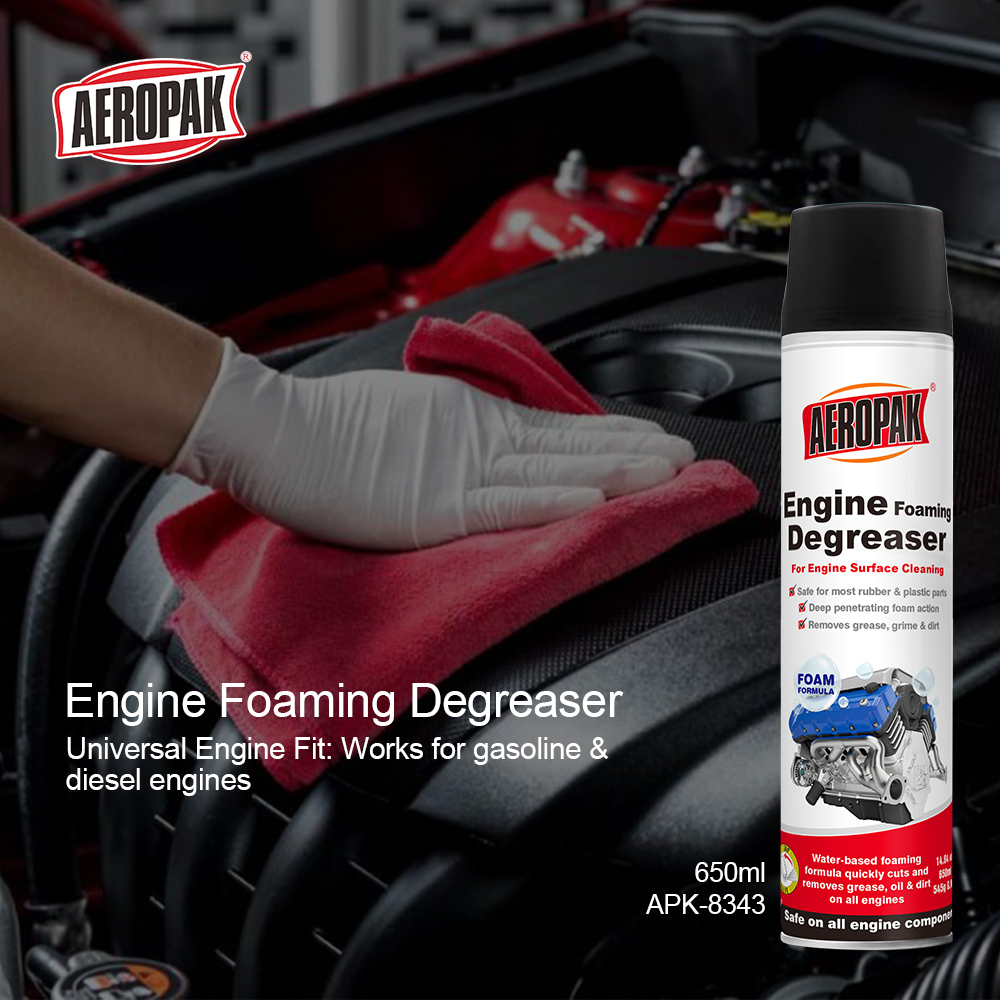 Το Aeropak Engine Degreaser απομακρύνει γρήγορα τη βρωμιά, τη σκόνη, τη βρώμα του δρόμου, το λίπος, το λάδι, την πίσσα, το κερί και τις εναποθέσεις βιθουμίου και είναι ασφαλές για χρήση σε όλα τα εξαρτήματα του κινητήρα.Αυτό το συμπυκνωμένο απολιπαντικό με βάση διαλύτες είναι κατάλληλο για χρήση σε κινητήρες, εργαλεία, μηχανικά μέρη και σκυρόδεμα χωρίς ζημιά στο καουτσούκ και το πλαστικό.